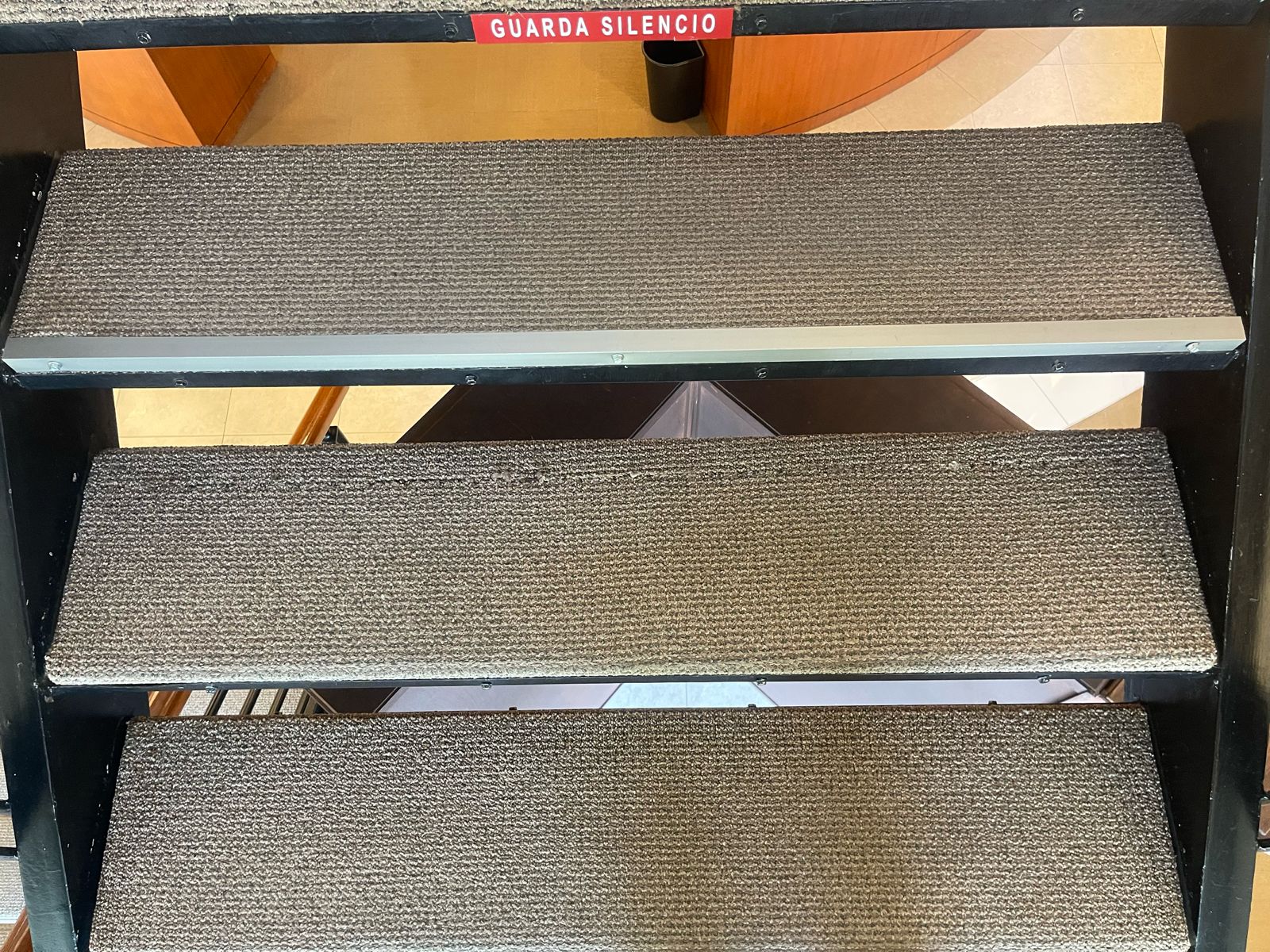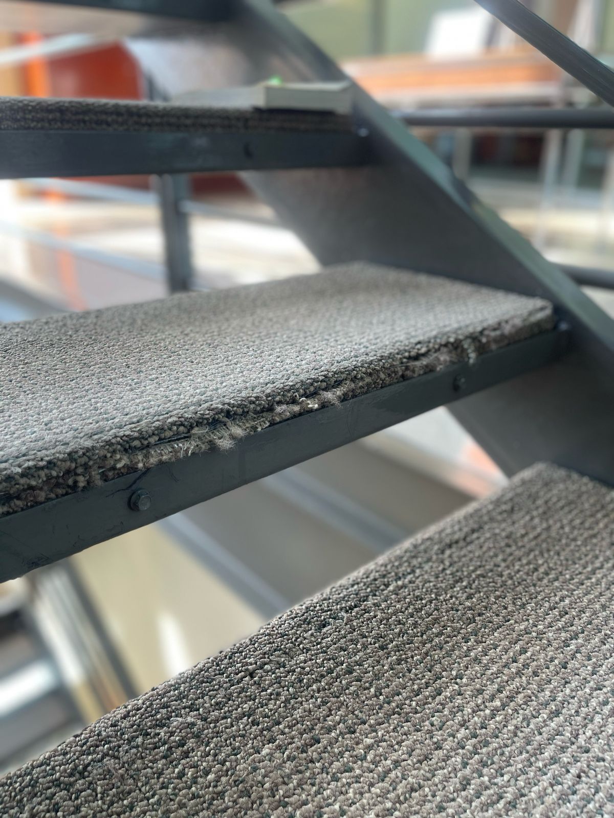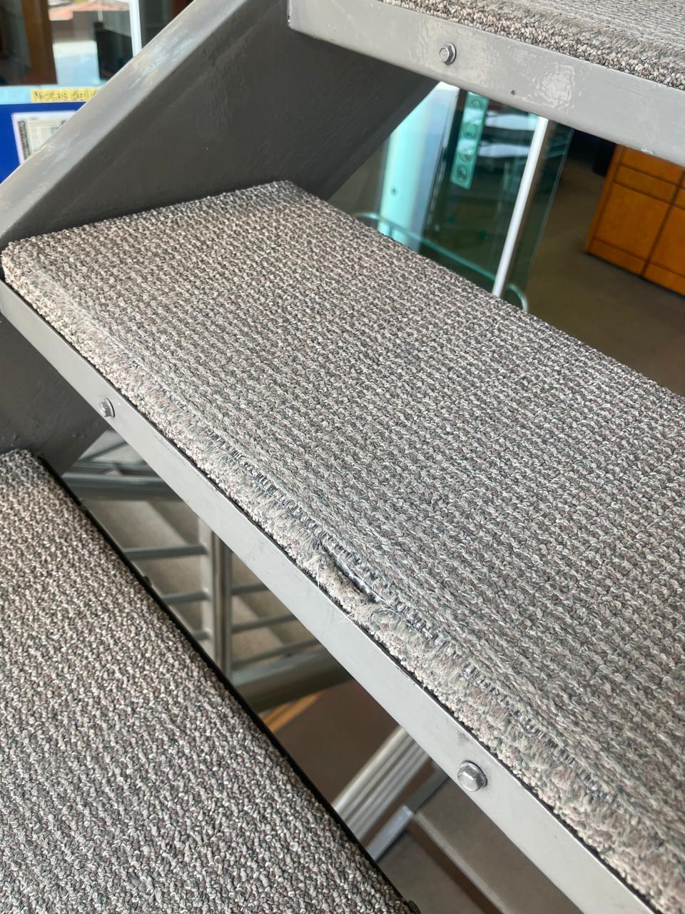 1er piso escalón 4 y 5. Alfombra deshilachada